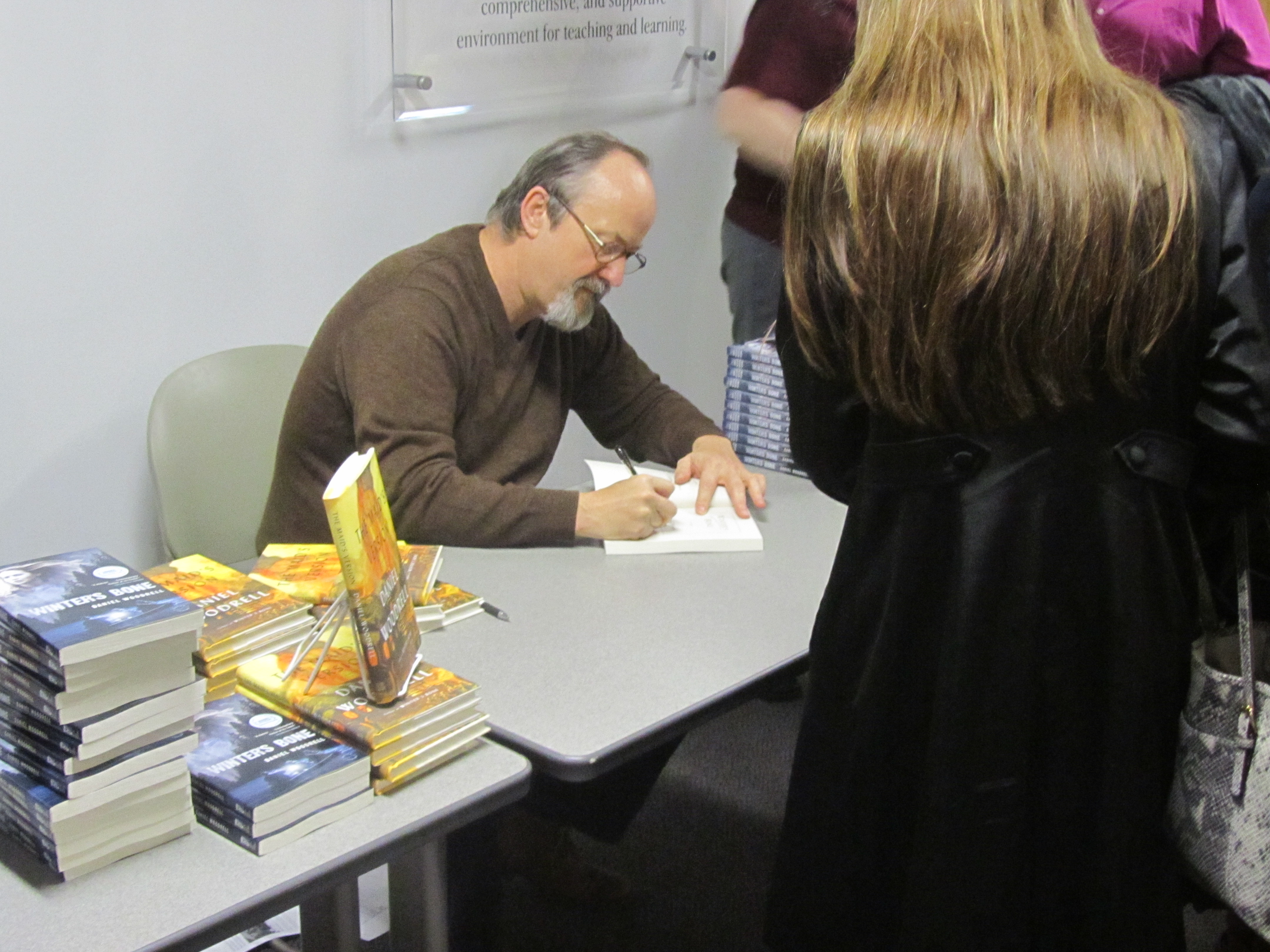 After the brief Q and A session, Woodrell signed autographs for those who brought their own copies of his work, or purchased a copy at the event.