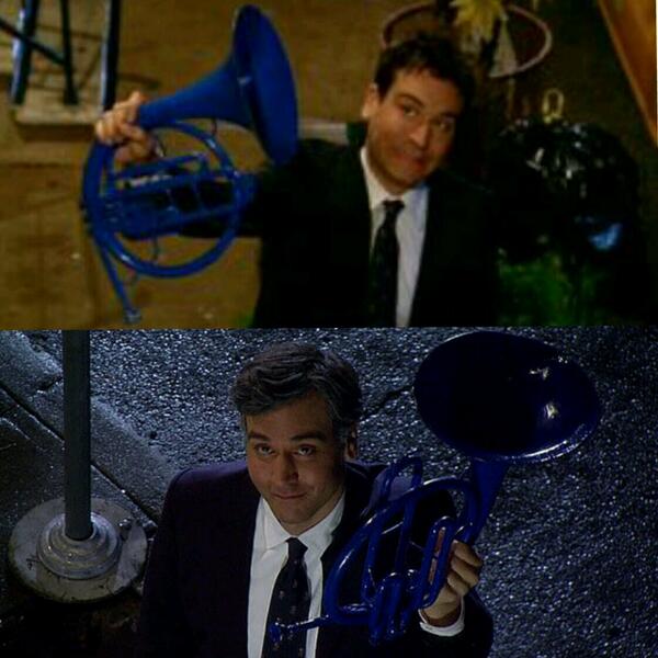 As I hope you know by now if you are still reading, the story turns out not to be how Ted met “the mother”, but that he is still in love with Robin after all these years and is asking his kids’ permission to ask out their “Aunt Robin.” The last scene of the series is a salt-and-pepper-haired Ted Mosby showing up at Robin’s apartment with the blue french horn, bringing their epic love story full circle.